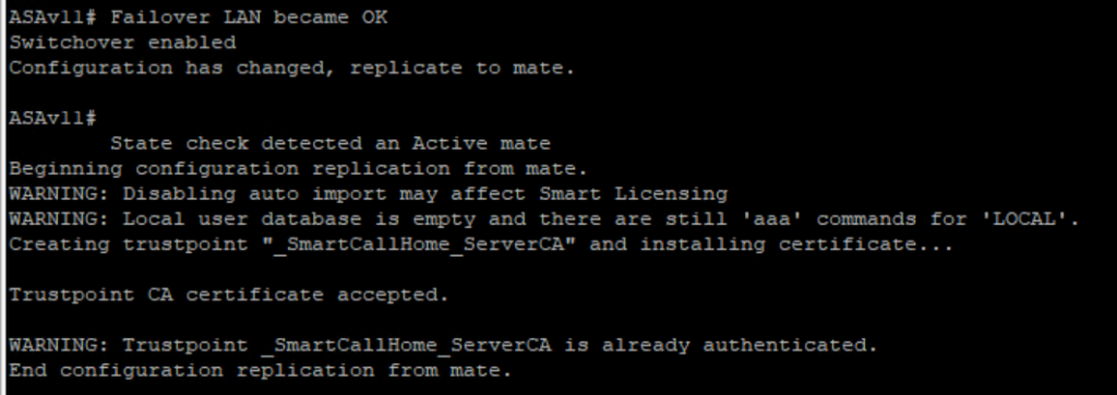 Note: when the ASA Pair is working in Active-Standby mode, we always make changes on the Active Unit, and the Secondary is automatically replicated.