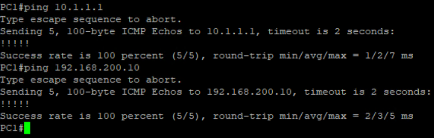 PC1(Inside) – 10.1.1.2 to PC2 (Outside) 192.168.200.10
