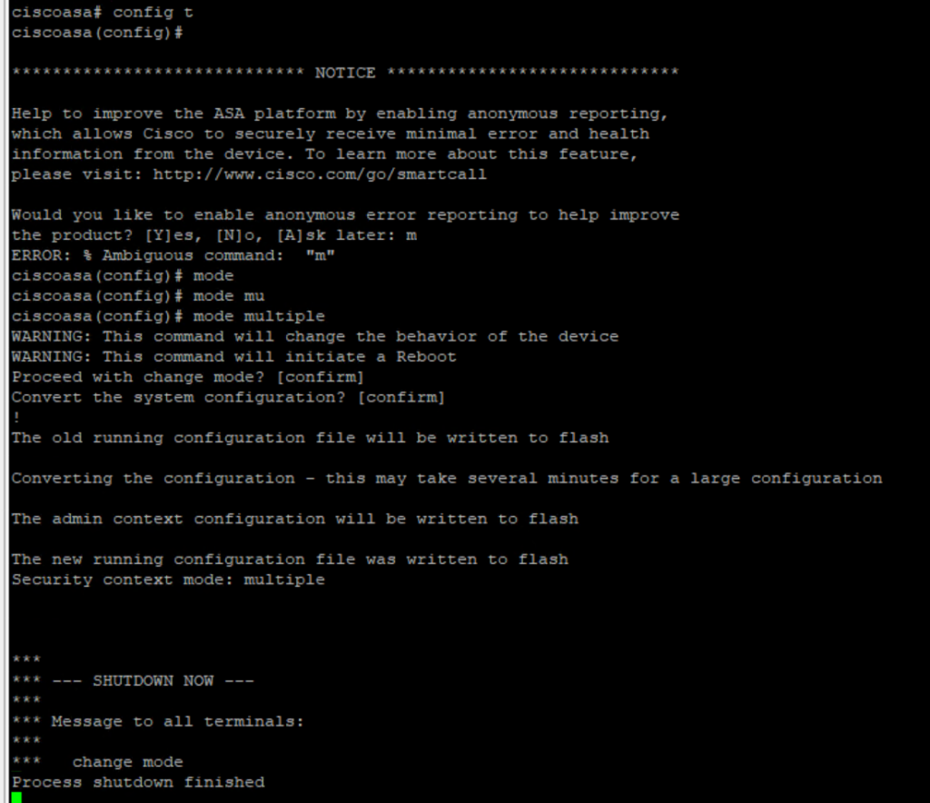 We need to enable mode to Multiple – By default ASA is in Single mode context