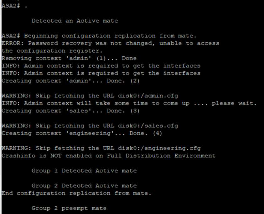 Now we reload ASA2 and ASA1 become active for both the context’s