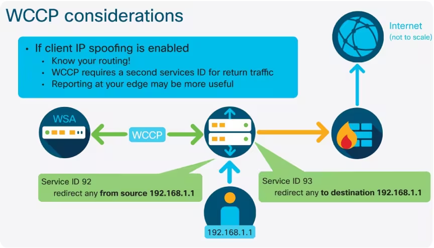 Web Cache Communication Protocol (WCCP) v2 is a Cisco-proprietary protocol that allows a router or Layer 3 switch to “hook” traffic and steer it to the WSA.