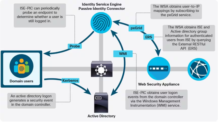 In a high-security environment, knowing that “IP 192.168.10.50” accessed a malicious site isn’t enough—you need to know it was “User: John.Doe.” Integrating the Cisco Web Security Appliance (WSA) with Active Directory (AD) is the definitive way to enforce user-based policies and achieve Single Sign-On (SSO).