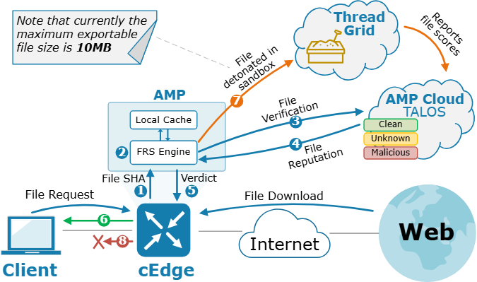 While Talos checks the reputation of the site, AMP (Advanced Malware Protection) checks the integrity of the files being downloaded (PDFs, EXEs, Zips).
